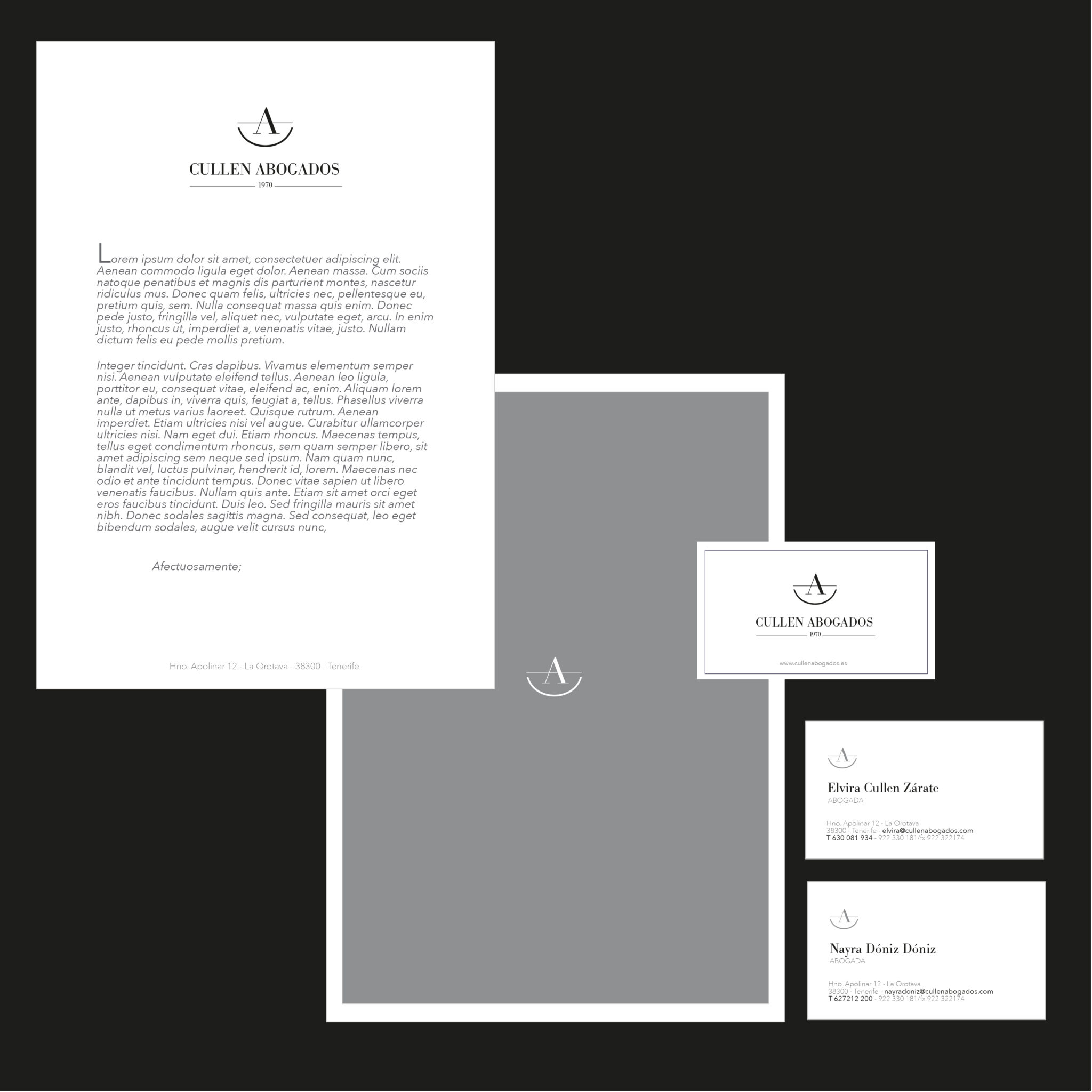 El despacho Cullen Abogados ofrece sus servicios desde el año 1970 en La Villa de La Orotava,Tenerife. En este trabajo se ha querido destacar en la implementación del desarrollo visual valores como la confianza a través de la inclusión de la misma fecha en la marca y el cambio generacional de la firma.