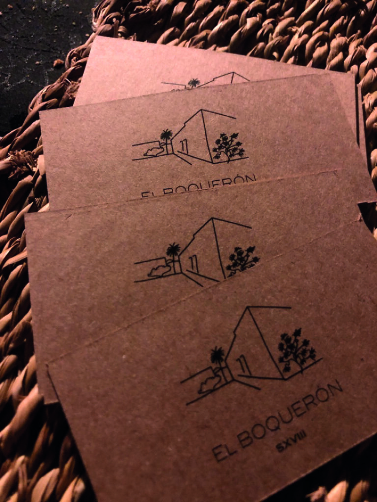 Imagotipo monocromático para finca El Boquerón, destinada a alojamiento vacacional, compuesto por una ilustración a mano alzada sencilla que le aporta “alma” y tipografía palo seco, que contemporiza el dibujo. Cuando un lugar es tan potente, solo puedes representarlo para crear su marca.